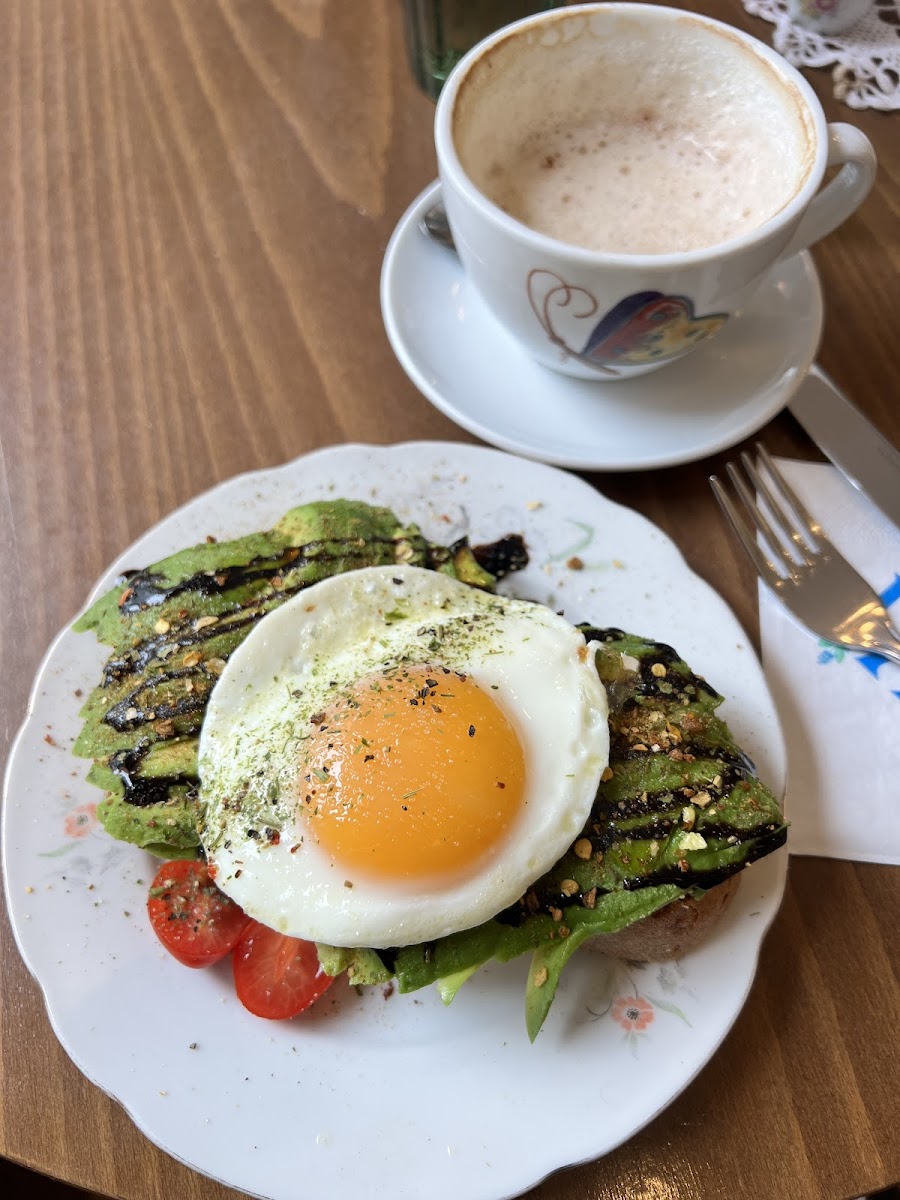 Such a cute and friendly place. Locals come here in the morning to chat and spend their time. Great selection of foods, very cozy “living room” atmosphere. Waiters speak English. Good service quality and friendly personal (!!) is the main importance! I would prefer this café over any of the others in this town. Avocado toast is delicious. And they serve water to their coffees which is very thoughtful. An eye for detail and such small complimentary services go a long way. Now, if they also offered internet and card payments it would be absolutely perfect.